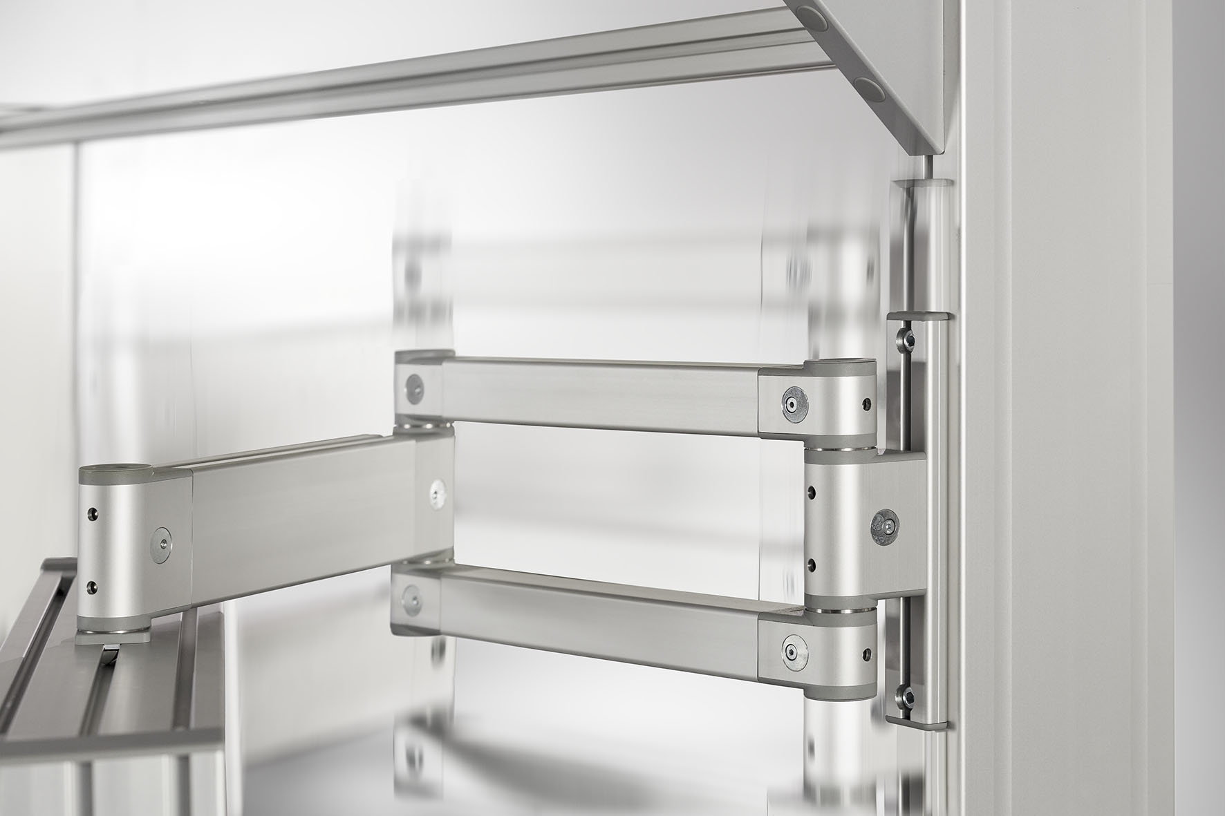 Preconfigured Pivot Arms and individual Friction Joints can be ordered directly in the item Online Shop. There is also the option of combining individual components to create special customised Pivot Arms. What’s more, the Pivot Arms are compatible with the components in the tried-and-tested item MB Building Kit System. The Friction Joints and Pivot Arms from item have won the Red Dot Design Award and the German Design Award.